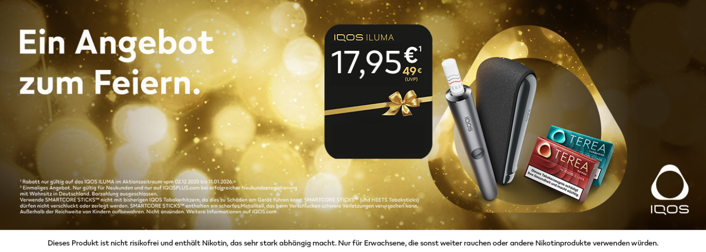Du interessierst dich für IQOS? Als einer der führenden autorisierten Händler in Deutschland bieten wir dir nicht nur die neuesten IQOS-Geräte, sondern auch das komplette Sortiment an HEETS und TEREA Sticks. Vom IQOS ILUMA PRIME über den IQOS ILUMA ONE bis hin zur ganz neuen IQOS ILUMA i wir alle Modelle vorrätig. Und zwar in verschiedenen Farben, damit du das Design wählen kannst, das zu dir passt.