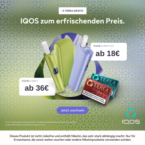 Du interessierst dich für IQOS? Als einer der führenden autorisierten Händler in Deutschland bieten wir dir nicht nur die neuesten IQOS-Geräte, sondern auch das komplette Sortiment an HEETS und TEREA Sticks. Vom IQOS ILUMA PRIME über den IQOS ILUMA ONE bis hin zur ganz neuen IQOS ILUMA i wir alle Modelle vorrätig. Und zwar in verschiedenen Farben, damit du das Design wählen kannst, das zu dir passt.
